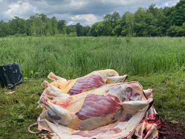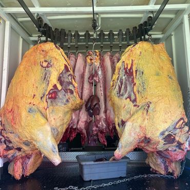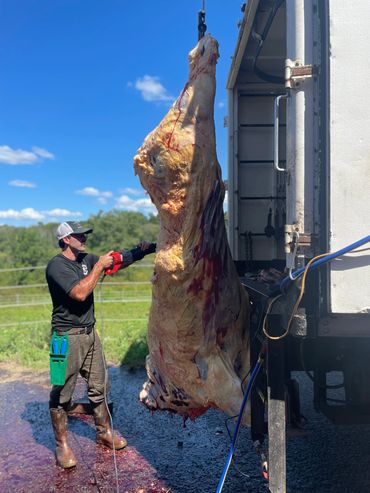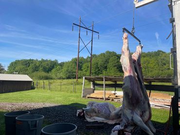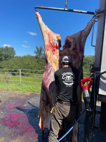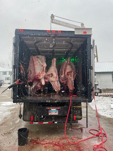 Slaughter can be a messy strenuous job, we take that load off of you. We ask that your animal is penned up and ready to go when we arrive. If unable to pen animal, please be sure you have a tractor or machine to pull the animal from its place of death. If you would like us to take guts/hides. There is an additional charge of $20 per beef or $10 per other will be added to slaughter fee. Otherwise, please have a space readily available for disposal.